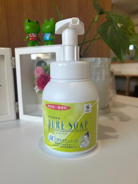 先日の研修会でアレルギー専門医の小児科の医師がお勧めされていた、カリ石鹸液を主原料とした泡で出るボディソープを入荷いたしました!